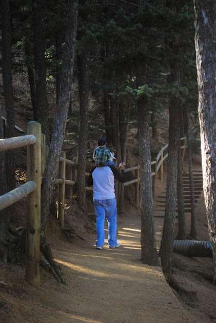 Jaxson spent the entire walk up the trail on daddy's shoulders. The walk down he walked himself and enjoyed sliding around on the crushed granite on the trail- he laughed the entire way down!